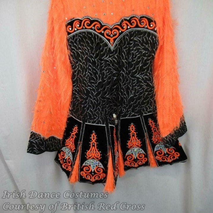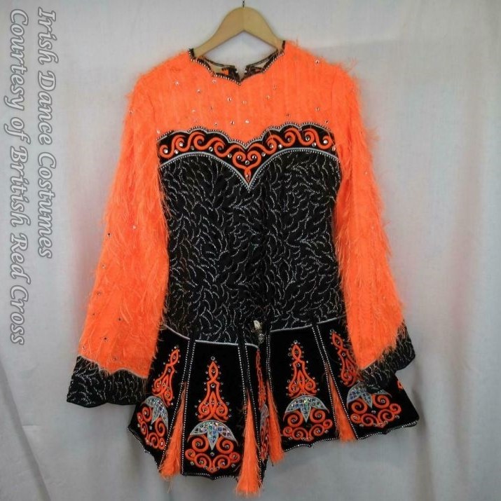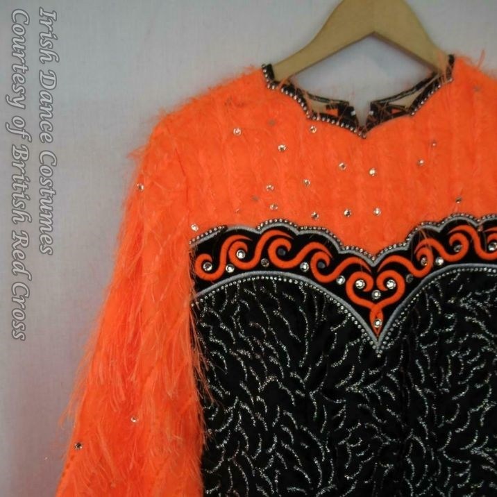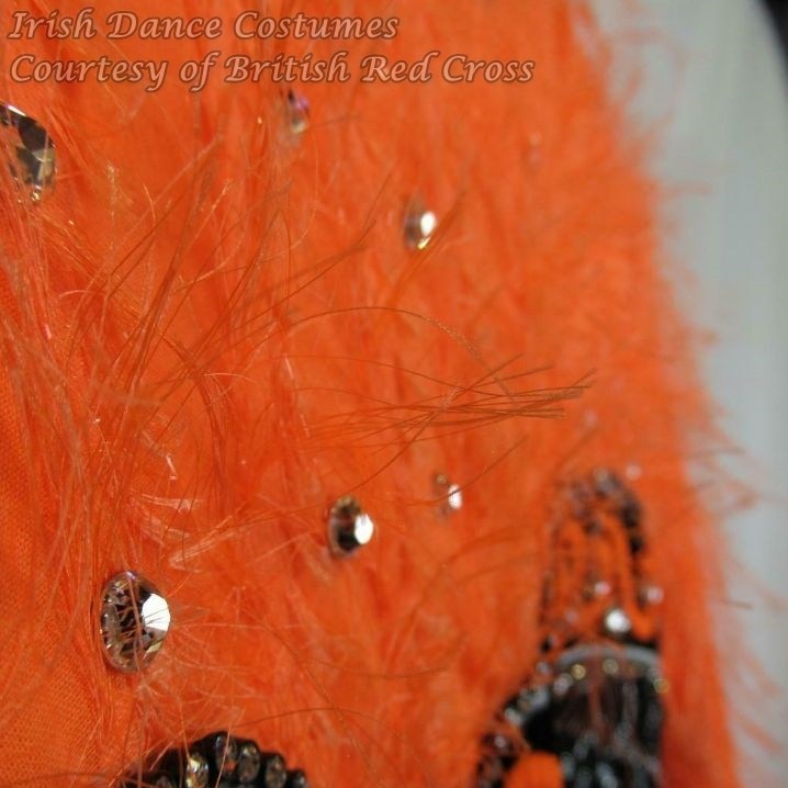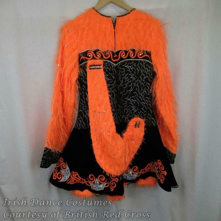I started attending feiseanna myself in 2009 and haven’t seen dresses like this one around Mainland Europe. I would also assume that the fluffy fabric might have tended to fall off and litter the dance floor and hence these types of dresses, such as the ones with feathers, did not prove to be suitable for competitions.